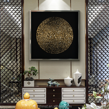 Stile moderno Incorniciato Fatti A Mano di Pietra Dorata Pittura di Arte su Tela Nera