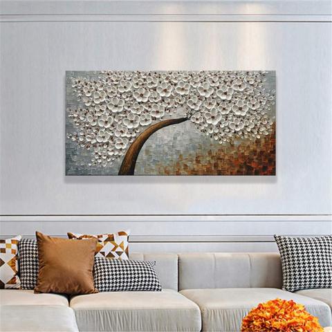 الحديث اليدوية قبالة خلفية بيضاء زهرة بيضاء اللوحة مجردة الفن على قماش