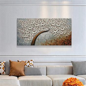 Decoración del hogar pura obra de arte pintada a mano 3D textura gruesa lienzo pared arte hecho a mano Origami blanco pintura al óleo abstracta con marco