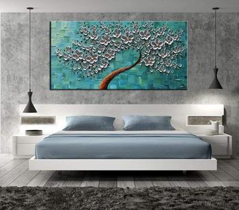 100% ทําด้วยมือที่ทันสมัย Wall Art สีฟ้าดอกไม้ภาพวาดสีน้ํามันบนผ้าใบดอกไม้ที่สวยงามงานศิลปะสําหรับห้องนั่งเล่นสํานักงานตกแต่งบ้าน